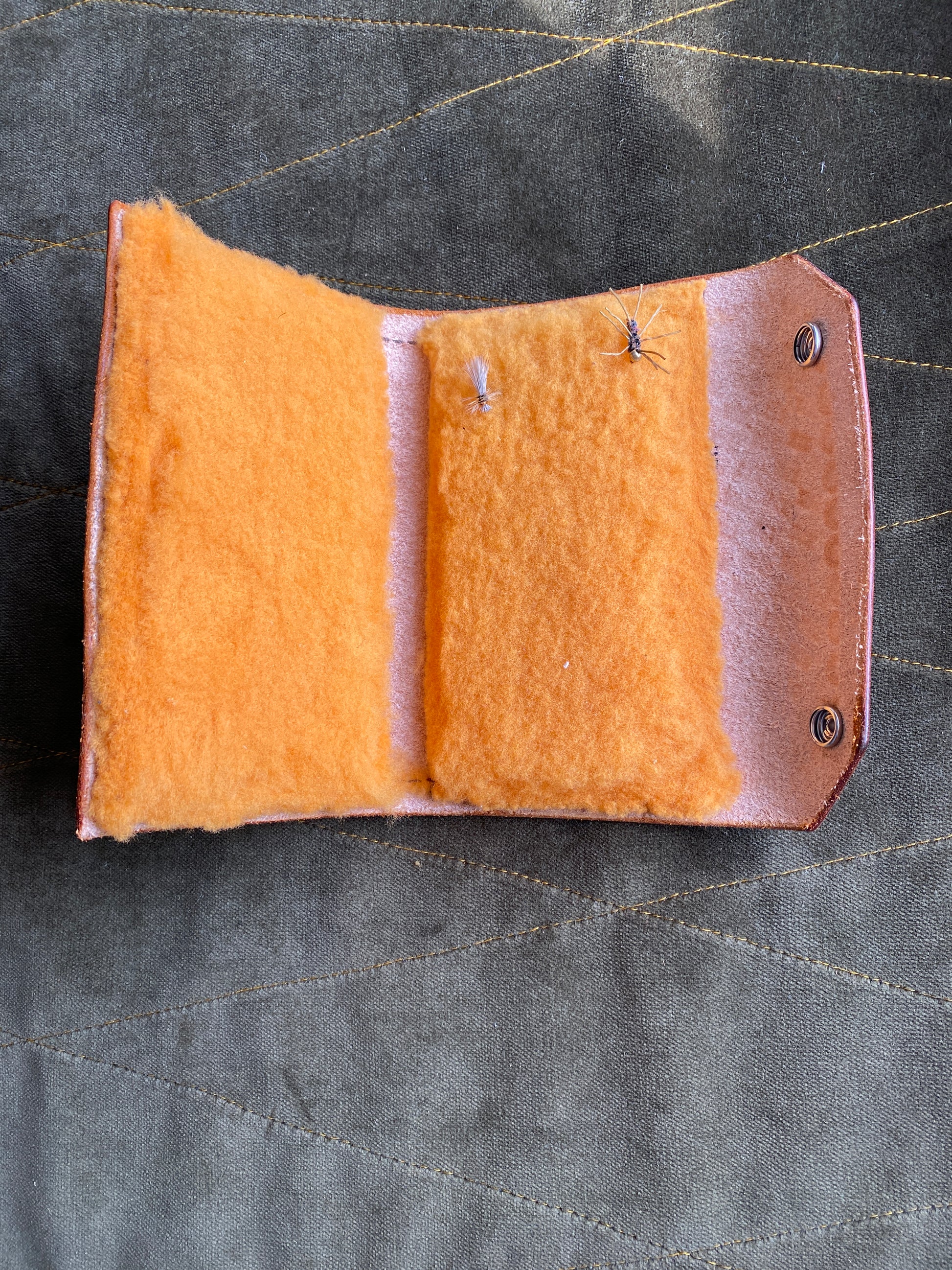 Hand tooled from Herman oak leather and lined with real shearling. Great for your traditional streamers