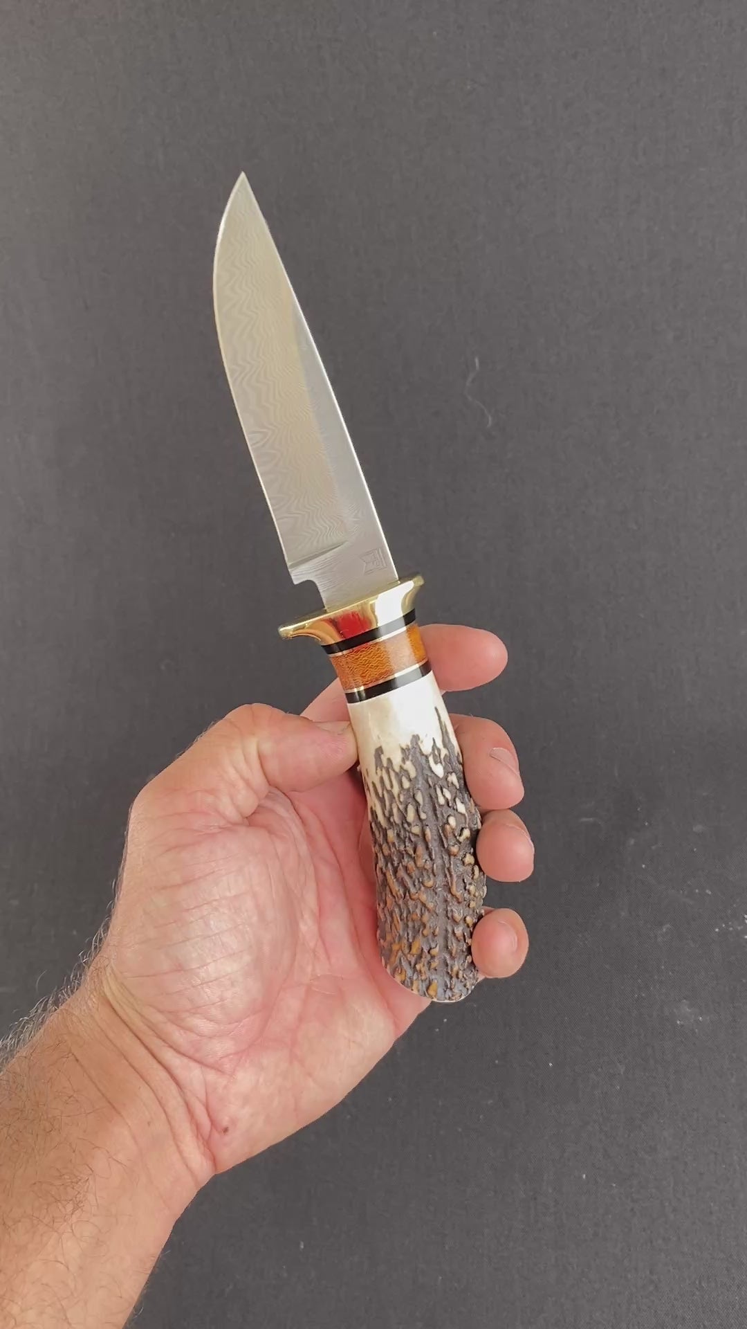 This knife represents some of my best work and is made of Stainless Damascus steel by Damaworks. Unlike Carbon Damascus steel this steel is non reactive and will remain untarnished under normal use.