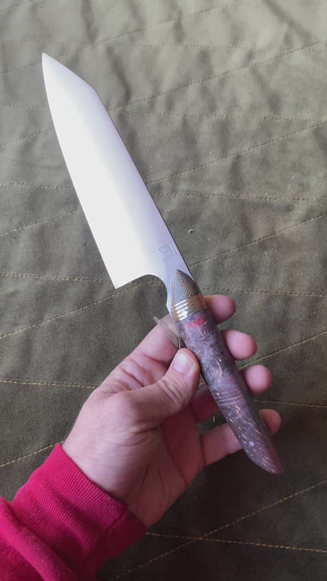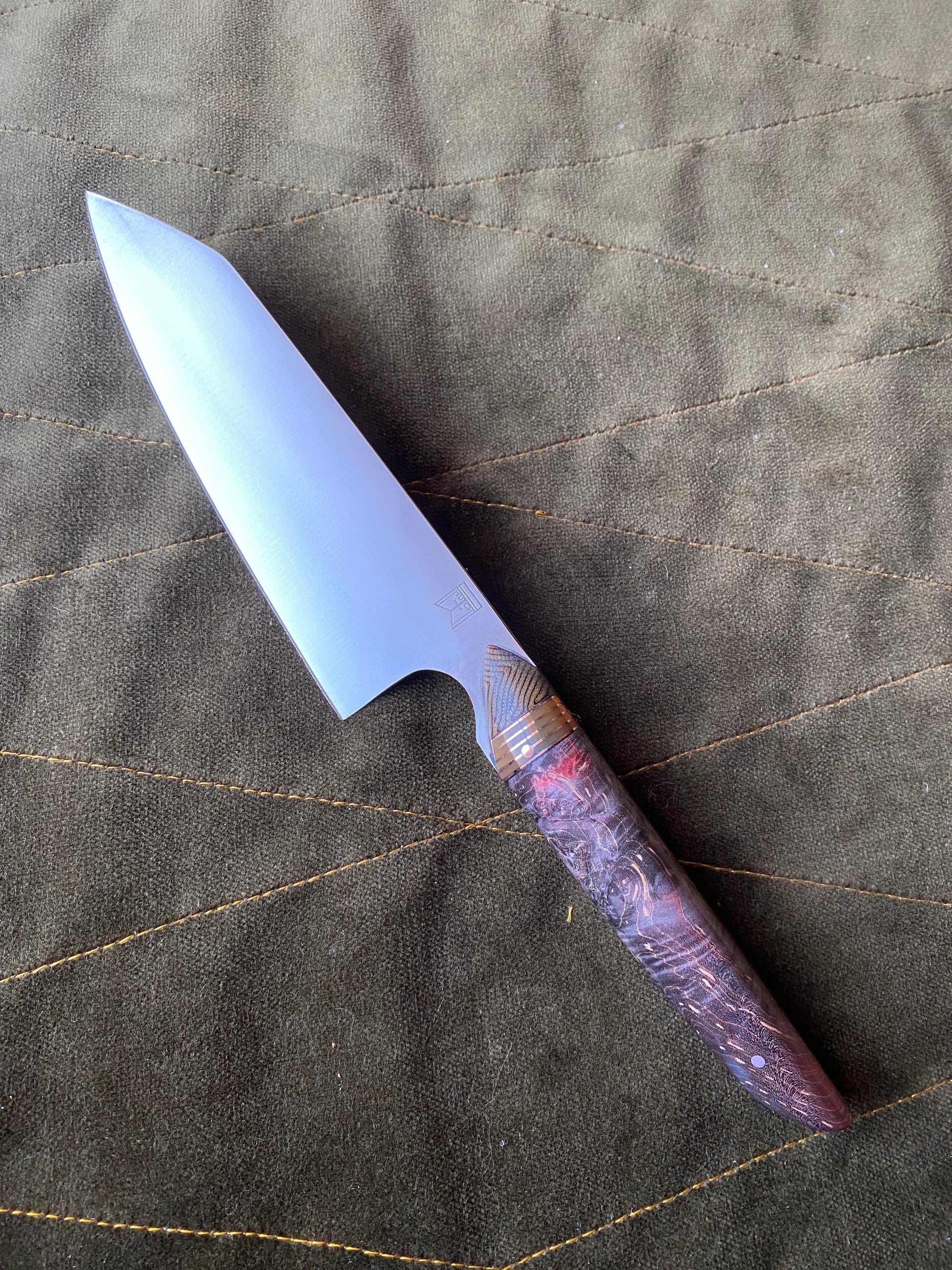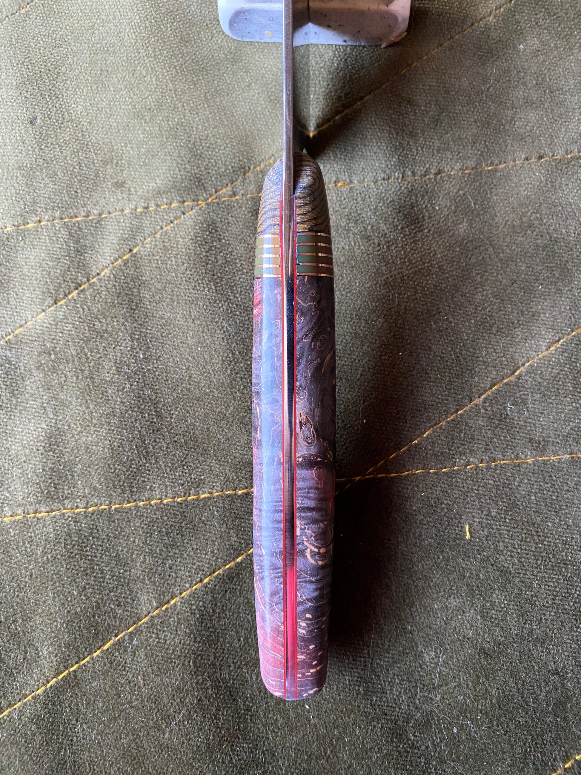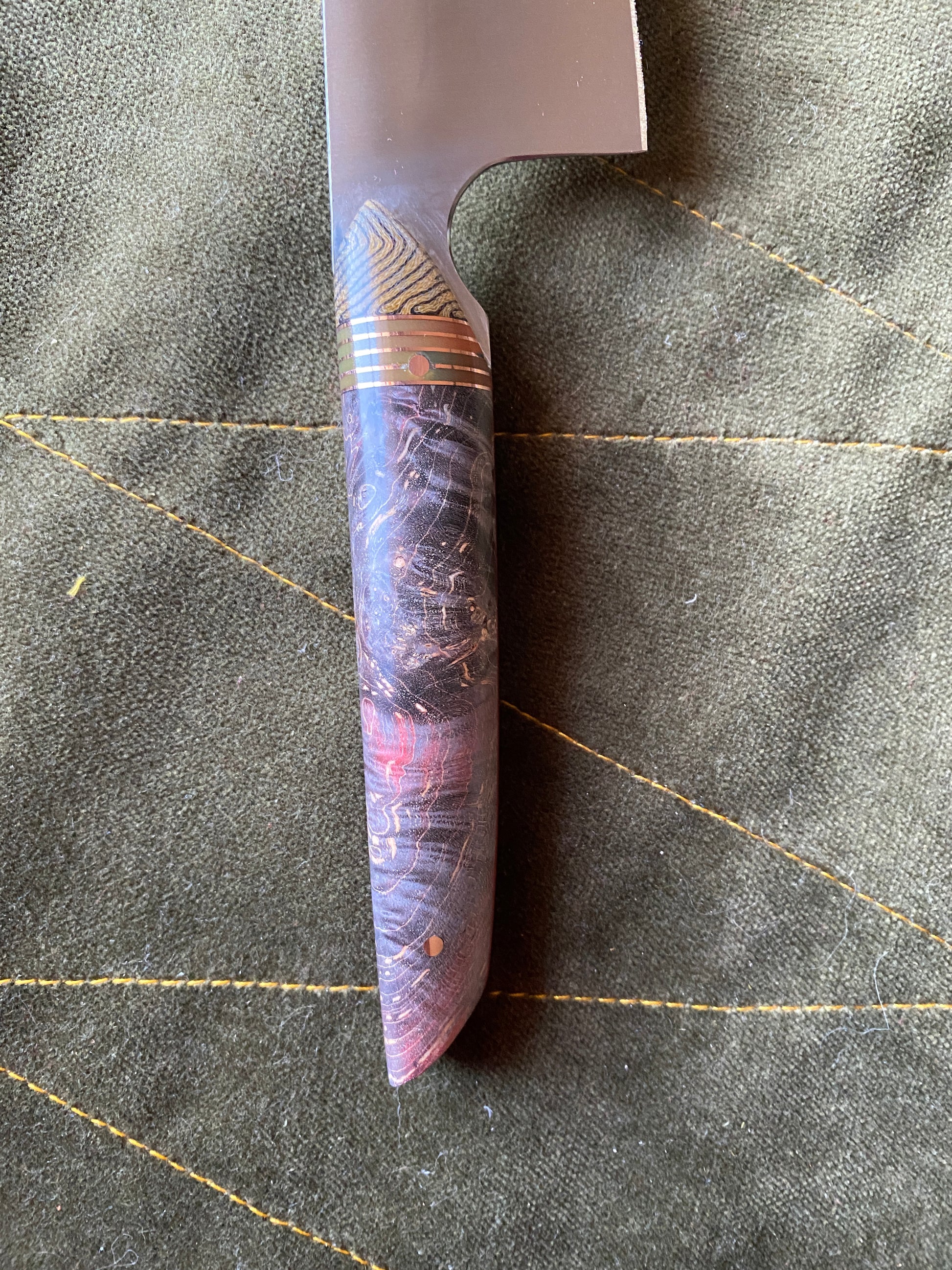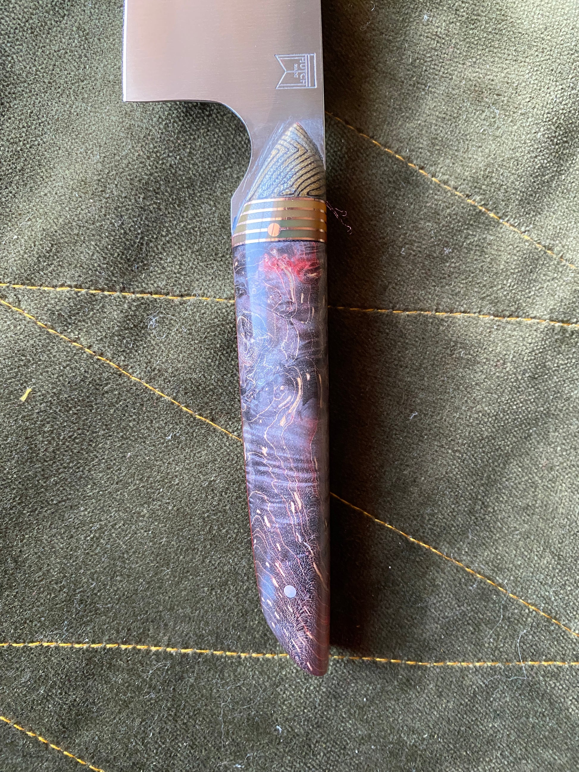 Stabilized and dyed maple scales with copper and g-10 accents